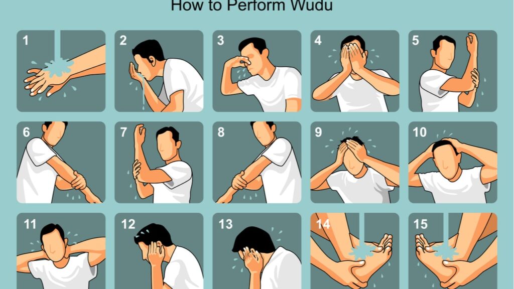 WHAT IS WUDU? Wudu is a physical and spiritual act to purify oneself before starting prayer. This purification ritual is a mandatory step that involves washing of the hands, mouth, nostrils, face, arms, head, and feet. The steps must be completed in the given order without long pauses in between each step. In the Sahih hadith of Sunan Abu Dawud, it was reported that the Messenger of Allah (ﷺ) said: “The prayer of a person who does not perform ablution is not valid” thus making it a necessary act before you begin your prayer. Wudu Step By Step 1. The process of performing wudu begins with niyyah or intention. This can be done by quieting your thoughts and becoming mindful of the act you are about to perform. You should say ‘bismillah’ which means “in the name of Allah” before starting wudu. So, what’s the importance of niyyah? It is an Islamic concept that our actions are done with the intent of pleasing Allah. It’s important that as a Muslim, your beliefs and behaviour are aligned. Intention is a notion that comes from within the heart. If we do good for the sake of doing good, we will be rewarded. If you do good for public praise or to feed your ego, it can be said that your niyyah was not pure. Saying bismillah before beginning Wudu either out-loud or silently in your head serves as a mental cue to prepare yourself for the purification ritual. 2.Wash both your hands. Begin with using your left hand to wash your right hand all the way up to the wrist. Do this for a total of three times. Do not forget to wash in between your fingers. Next, repeat the process and wash your left hand three times. In hadith book of Muslim and Jami At-Tirmidhi it was said, “and when he washes his hands, every evil he did with his hands leaves with the water – or with the last drop of water – until he becomes free of sin.” 3.Use your right hand to cup some water and rinse your mouth three times with it. Swish the water thoroughly to cleanse your mouth and then spit it out. 4.Rinse your nose three times. Using your right hand, cup water, and partly inhale or sniff it into your nose without taking in too much, causing you to choke. Use your left hand to blow out the water and repeat this process three times. It’s important to make sure the water you are using is safe while rinsing your nose for wudu. If you are from a warmer region of the world, developing or third world country the water can harbor dangerous bacteria. To take proper precautions, if there is any doubt, it is advised to boil the water and leave it to cool before rinsing to minimize risk. 5.Wash your entire face with water. Cup water in your hands and wash your face, beginning with your forehead, bringing the water down to your jawline and finishing at your chin. It is the Sunnah of the Prophet to keep a beard. If you have one, run your fingers through the beard. If the beard is thin, it can be washed thoroughly. Otherwise, for a thick beard, run your wet fingers through the hair to clear it of any dirt. 6.Washing the arms. Begin with washing your right arm first, from the tips of your fingers to just above your elbow. The entire arm should be wet, leaving no dry parts. Repeat this three times. It is also important to remove any impediment that would obstruct water to the skin, for example, mud, nail polish, wax, or dough. 7.Clean your head. This act is known as “Masah” for ritually cleaning your head with a small amount of water. You would want to wet your hands, shaking any excess water away. Next, wipe your hands through your hair forwards and backwards, i.e. from your forehead, to the back of your head, back to your forehead. Clean your ears from the inside and the outside. With your index finger wiping away any dirt or wax in the groves of your ear, use your thumb to clean the back of the ear. This process of wiping the head and ear only needs to be done once. Any Muslim head cap (kufi / taqiyah) must be removed. Wet hands must actually touch the head. If the hair is braided, it is not necessary to unbraid the hair. For men with long hair or women, it is not mandatory to wipe the entire length of the hair. Just go up to the fore-neck, but no further. 8.Washing the feet. Begin washing your right foot, covering from the tip of your toes to just above the ankle. Be sure to wash the entire foot and clean in between each toe to get rid of any dirt that may have accumulated. Repeat this three times and then do the same for your left foot. Summary of Wudu Steps: Here’s a summary of the steps. It’s important these steps are memorized and performed in this order without any long breaks in-between each step. 1. Start with the right niyyah (intention), say Bismillah. 2. Washing hands three times, begin with right hand. 3. Wash mouth three times. 4. Rinse nose three time. 5. Wash face three times. 6. Wash arms three times, begin with right arm from fingertips to just above elbow. 7. Wipe head once and clean ears once. 8. Wash feet three times, begin with right foot from tip of toenail to just above ankle.